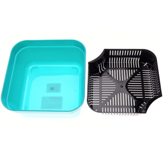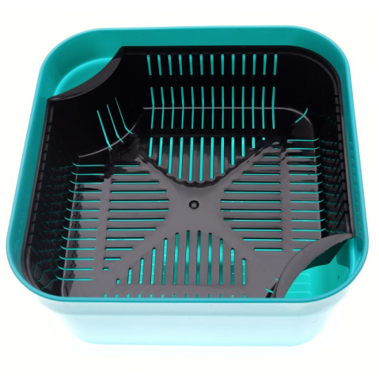 Cutia este confecționată din plastic durabil și este ușor de curățat și întreținut. Contine sita pentru umectarea peletelor.