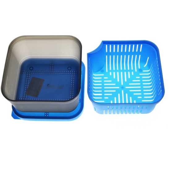 Cutia este confecționată din plastic durabil și este ușor de curățat și întreținut. Contine sita pentru umectarea peletelor.