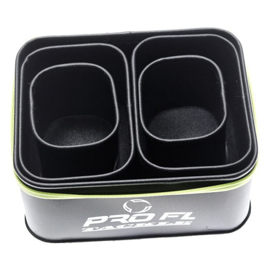 Este un set compus din 3 bacuri de nada fabricat din material EVA semirigid si impermeabil, destinat transportului si pastrarii groundbait-ului, peletelor sau chiar a accesoriilor.