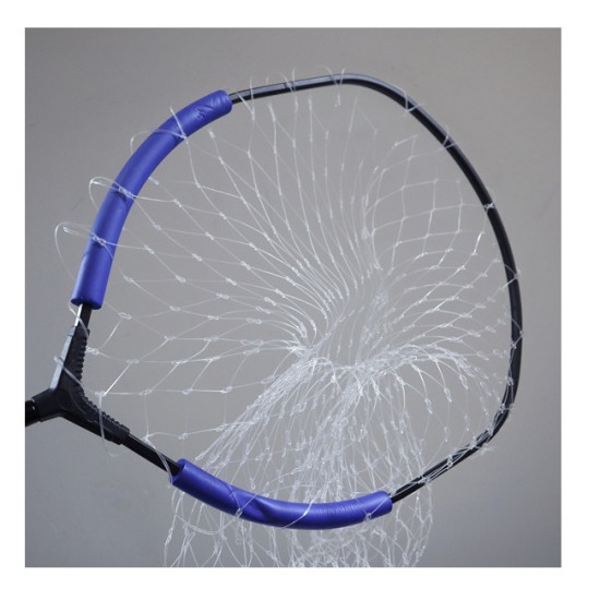 Rama de aluminiu foarte rezistent, file universal, flotoare laterale, plasa nylon cu ochiuri mari.