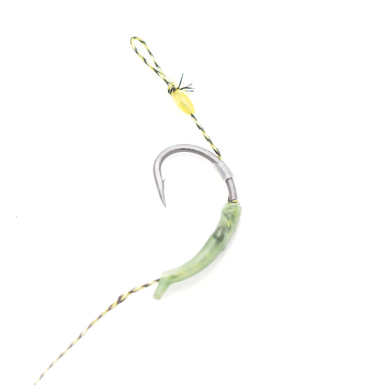 Montura este realizată folosind fir leadcore, un material robust și rezistent, care oferă o rezistență suplimentară și siguranță în timpul utilizării. Firul leadcore este integrat în mod sigur în montură, asigurându-se că plumbul și carligul sunt corect atașate și funcționează împreună armonios.