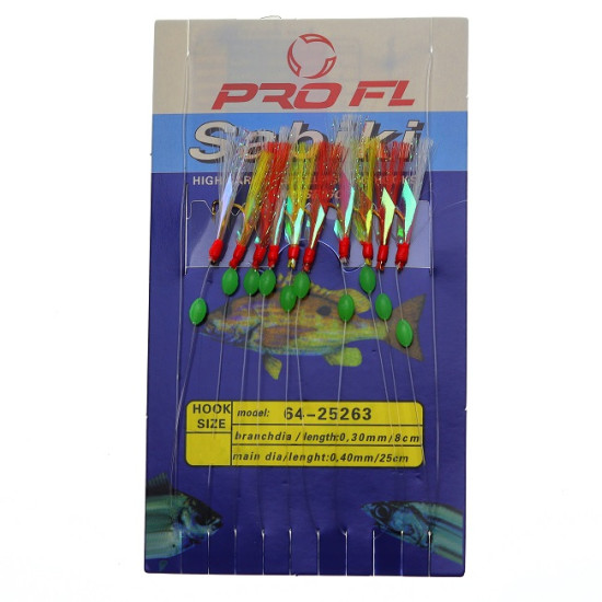 Set de taparine, foarte bune in perioada cand scrumbia intra pe dunare sau la pescuitul pe mare al chefalului si stavridului . Montura de 10 taparine este legata pe fir transparent, avand 10 carlige cu pana alba si rosu la baza+gliter+folie care imita foarte bine pestisori mici.