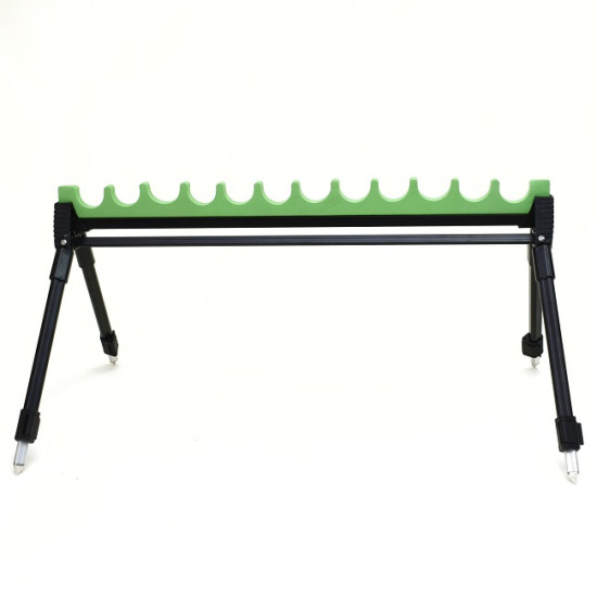 Suportul este construit din metal cu picioare extensibile iar locasurile pentru lansete este realizat din material Eva de mare densitate.
