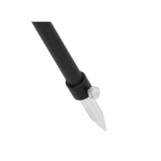 Suport feeder compact pentru lansete, cu trei picioare de sprijin. Construcţia suportului este realizată complet din aluminiu, fără utilizarea pieselor din plastic. O asemenea variantă minimalizează posibilitatea de deteriorare, respectiv ruperea vreuneia dintre părţi şi asigură o masă foarte redusă. Stabilitatea excelentă a suportului este asigurată de trei picioare telescopice care împiedică răsturnarea sa involuntară în cazul tragerilor sau la vânt. Picioarele au la capete vârfuri ascuţite care permit înfigerea în sol, fapt prin care se poate obţine o rigiditate şi mai bună a ansamblului. Datorită picioarelor telescopice este posibilă adaptarea sa adecvată la teren denivelat. În centrul suportului este montat pichetul, al cărui înălţime poate fi reglată cu ajutorul unui mecanism masiv cu filet. După strângerea lui, acesta împiedică orice fel de mişcare nedorită. Pichetul dispune de un filet universal, datorită căruia este posibilă ataşarea le el a orice fel de suport feeder pentru lansete, buzzbar, eventual şi semnalizator. Contrar dimensiunilor sale discrete de transport suportul, prin intermediul picioarelor telescopice, mecanismului central extensibil şi de asemenea pichetului telescopic, poate fi ridicat la înălţimea respectabilă de până la 140 cm, ceea ce va surprinde în mod plăcut mulţi utilizatori. O asemenea variabilitate, împreună cu designul de efect, face din el un produs foarte practic la un preţ foarte plăcut.